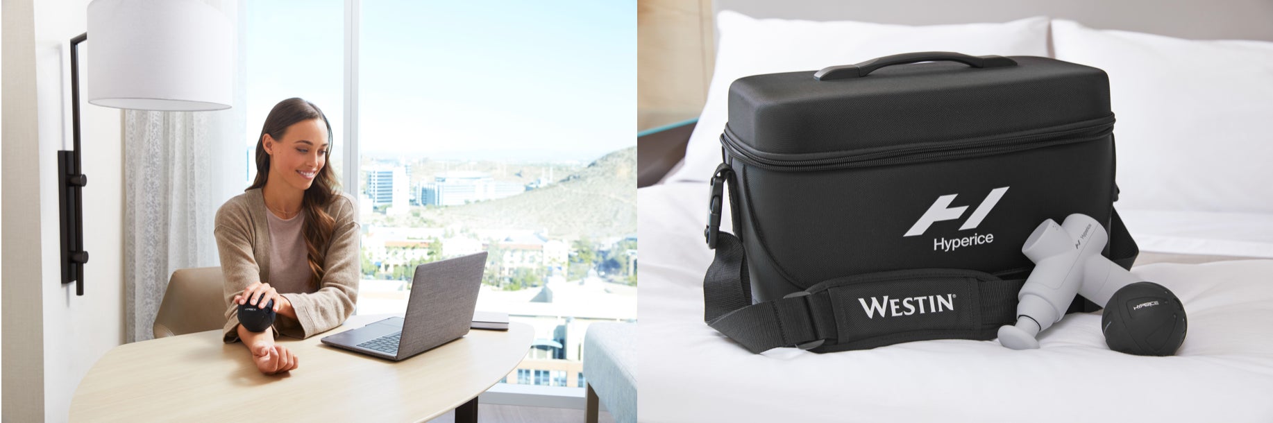 Westin Hotels & Resorts(ウエスティンホテル&リゾート)は、旅行中のゲストが快適に疲労回復や良い健康状態を維持できるようにと、これまでも特徴的なウェルネスプログラムを実施してきました。その使命が当社の製品と共に最高のプログラムへと再構築され、WestinWORKOUT®️ギアレンディングプログラムとして結実。健康増進のためのレンタルキットとして貸し出しをスタートします。運動後のリカバリーや長旅による筋肉疲労や緊張を緩和させるサポートとして、Hypervolt Go 2(ハイパーボルトゴー ツー)、Hypersphere Mini (ハイパースフィア ミニ)など、ハイパーアイスの人気ラインナップをご用意しました。