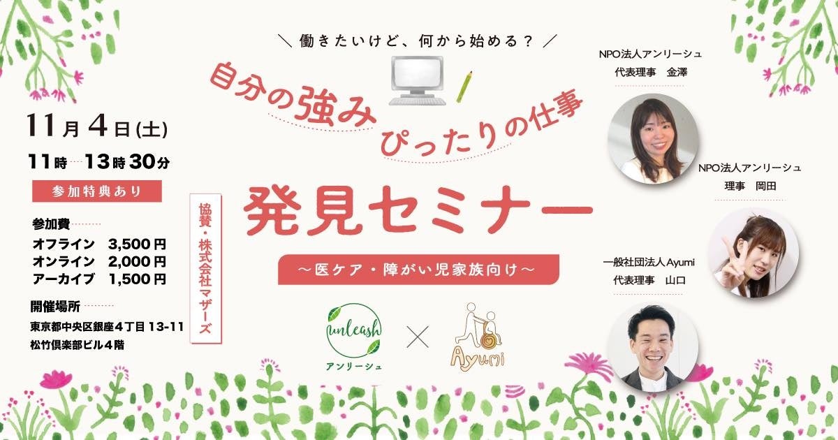NPO法人アンリーシュ が医療的ケア児・障害者の家族の新しい働き方をテーマに、仕事発見セミナーを開催