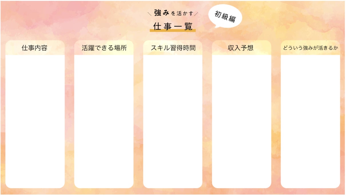 ご応募いただいた方に、強みを活かす仕事一覧シートをプレゼントします!