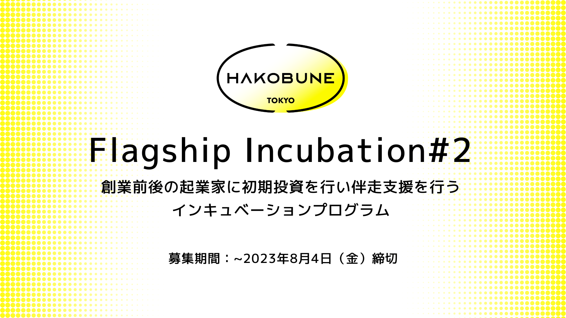 【HAKOBUNE】創業前後の起業家に初期投資を行い伴走支援を行うインキュベーションプログラム「Flagship Incubation #2」の募集を開始