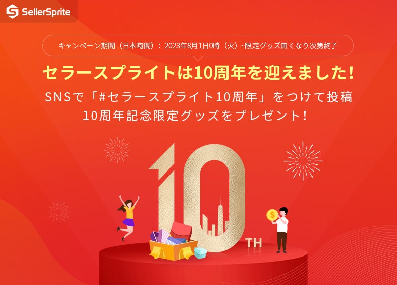 Amazonデータ分析ツール「SellerSprite」8/1(火)より「設立10周年ハッシュタグキャンペーン」開始!誰でも参加可能で何が届くかお楽しみ。