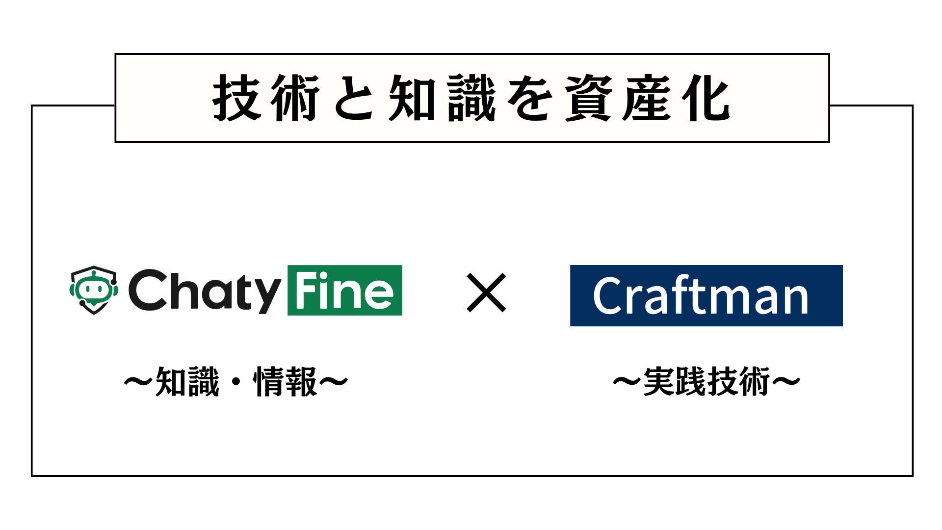 当社の代表である宮本治氏は、「技術と知識の資産化は当社の重要なコンセプトであり、「CraftmanAI」と「ChatyFine」はその実現に欠かせないツールです。これらの技術を活用することで現場で働く専門家たちが、自身の知識と技術をより深く広く共有し、さらなる価値創造を実現できることを期待しています。」とコメントしています。