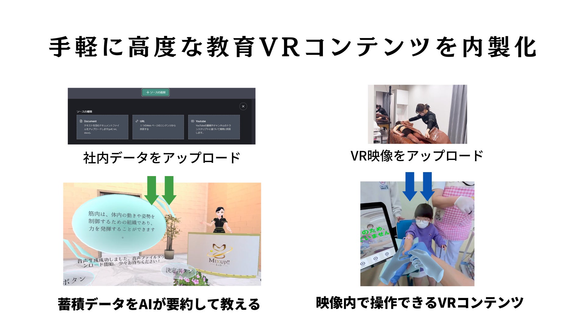 「CraftmanVR」と「ChatyFine」がを組み合わせることで、専門家の知識と技術を資産化し、共有・再利用する新たな道が開かれます。教育やビジネスシーンでの画期的なコンビネーション技術を活用することが出来ます。