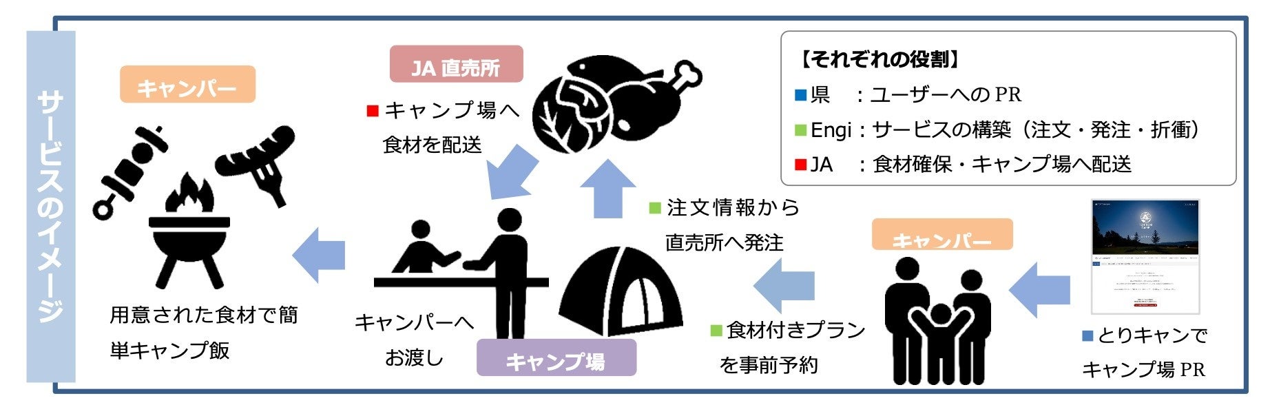 キャンプは観光としての経済効果が低く、地域振興に向かないという実態があります。その理由の一つに、キャンプのメインイベントであるバーベキューが、その地域の食材でまかなわれていないという課題があります。この課題を解消すべく、