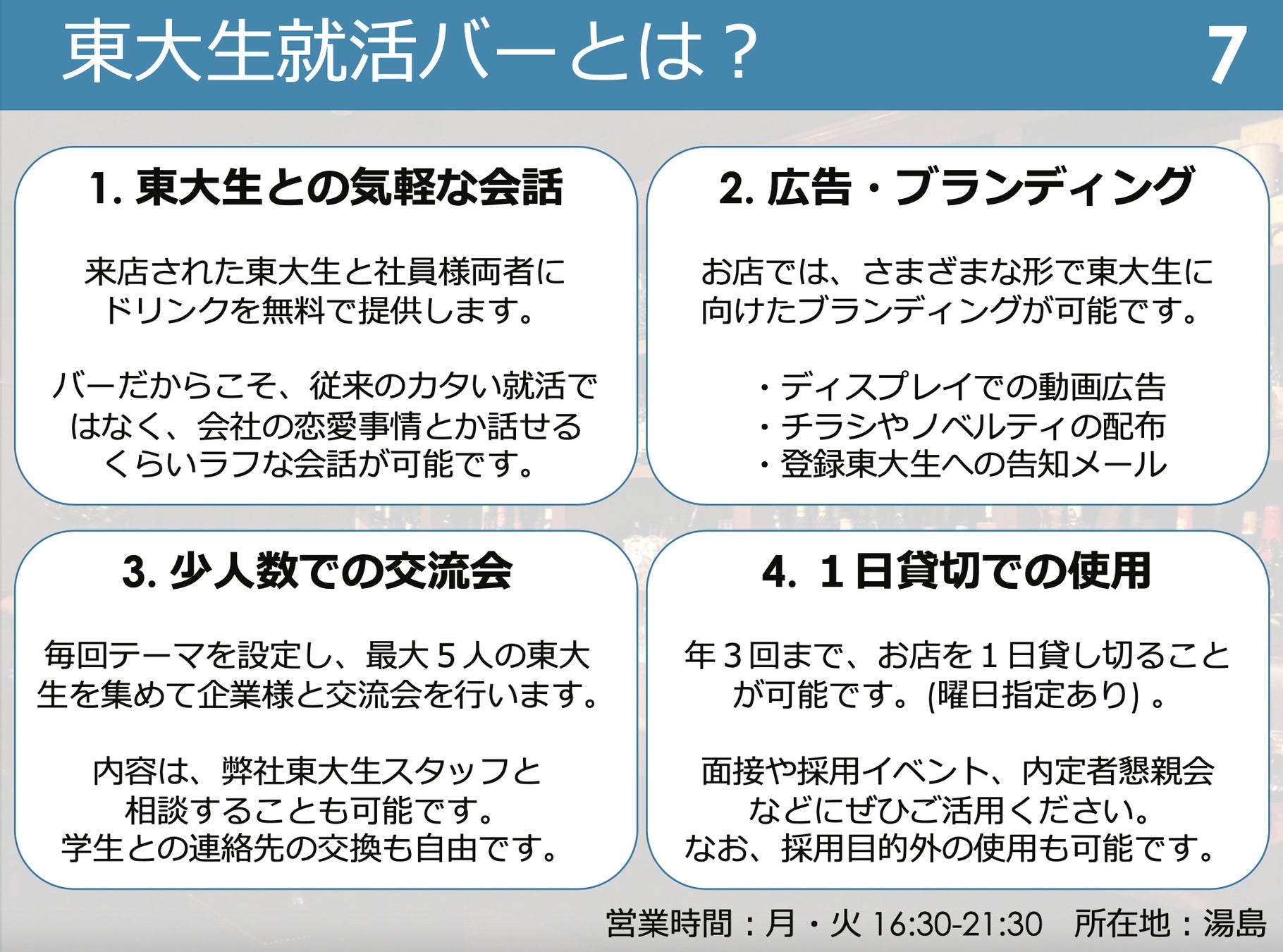 東大生就活バー(16:30〜21:30 不定休)