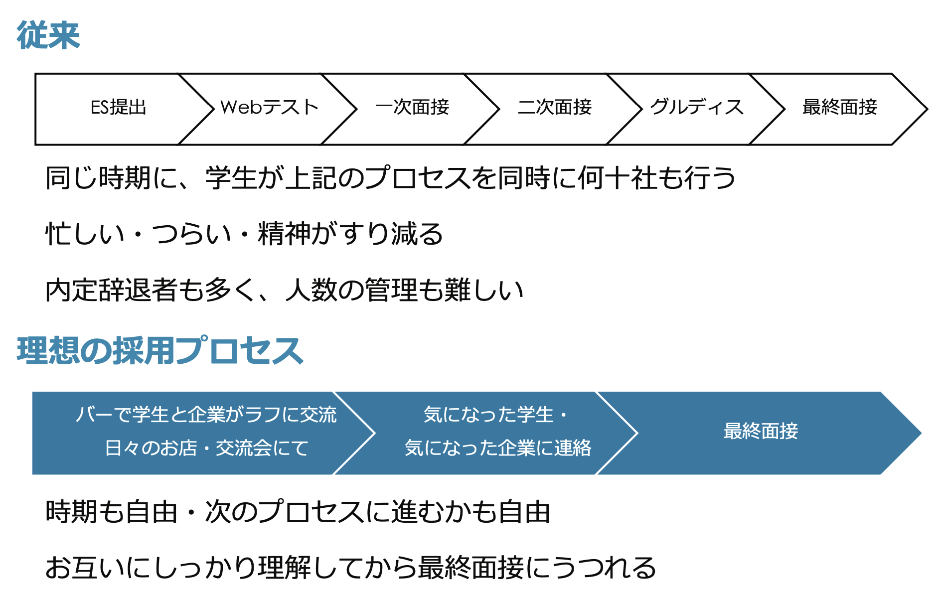 いままでの形式的な採用プロセスと異なり、