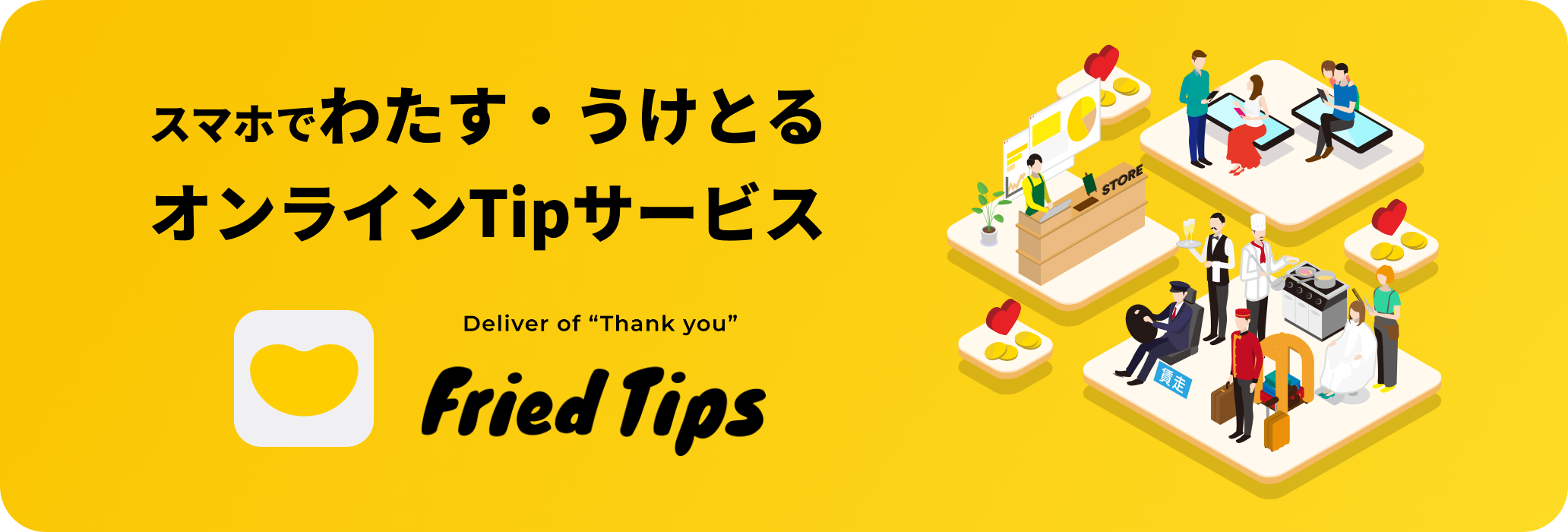 株式会社Fried Tips[フライドチップス](所在地:千葉県松⼾市、代表取締役社⻑:加藤 ⽇⾼)が運営するオンラインチップサービス【Fried Tips】は、株式会社セクションエイト(所在地:東京都渋⾕区、代表取締役社⻑:安⽥ 隆之)が運営する相席屋・THE SINGLE・The Publicstand・新宿駆け込み餃⼦・THE SHISHA HOUSE・SCALEの各店舗において、実証実験を