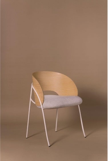 Haguチェアの流れるようなオープンアームの木製の背もたれは、座る人を暖かく包み込み、布張りのシートは、しばらく座っているたくなるような気持にさせてくれます。」と、ABコンセプトの共同設立者であるEd Ngは述べています。