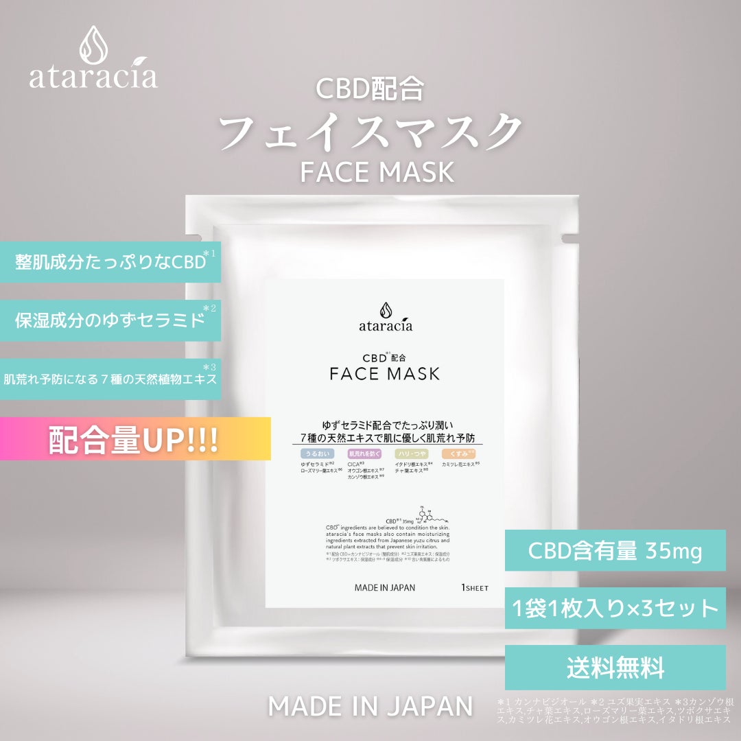 吉兆堂のCBDブランドataraciaからフェイスマスクがバージョンアップして販売中!!