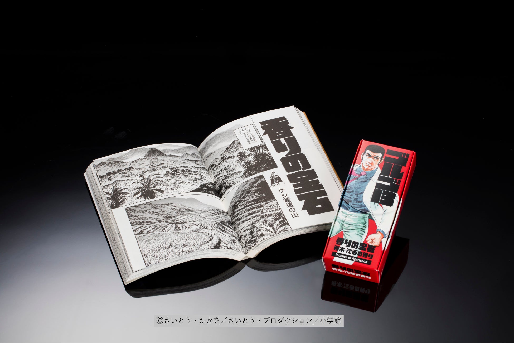 『ゴルゴ13』が「香りの宝石」(SPコミックス150巻・第430話)のストーリーで訪れたベトナムの奥地で出会った香木・沈香(作中では沈香の最上級に部類される伽羅)を配合して香りづくりしたお香です。『ゴルゴ13』のように簡単にその姿を現さず、長年謎のベールに包まれた香木・沈香の香りをお楽しみいただけます。