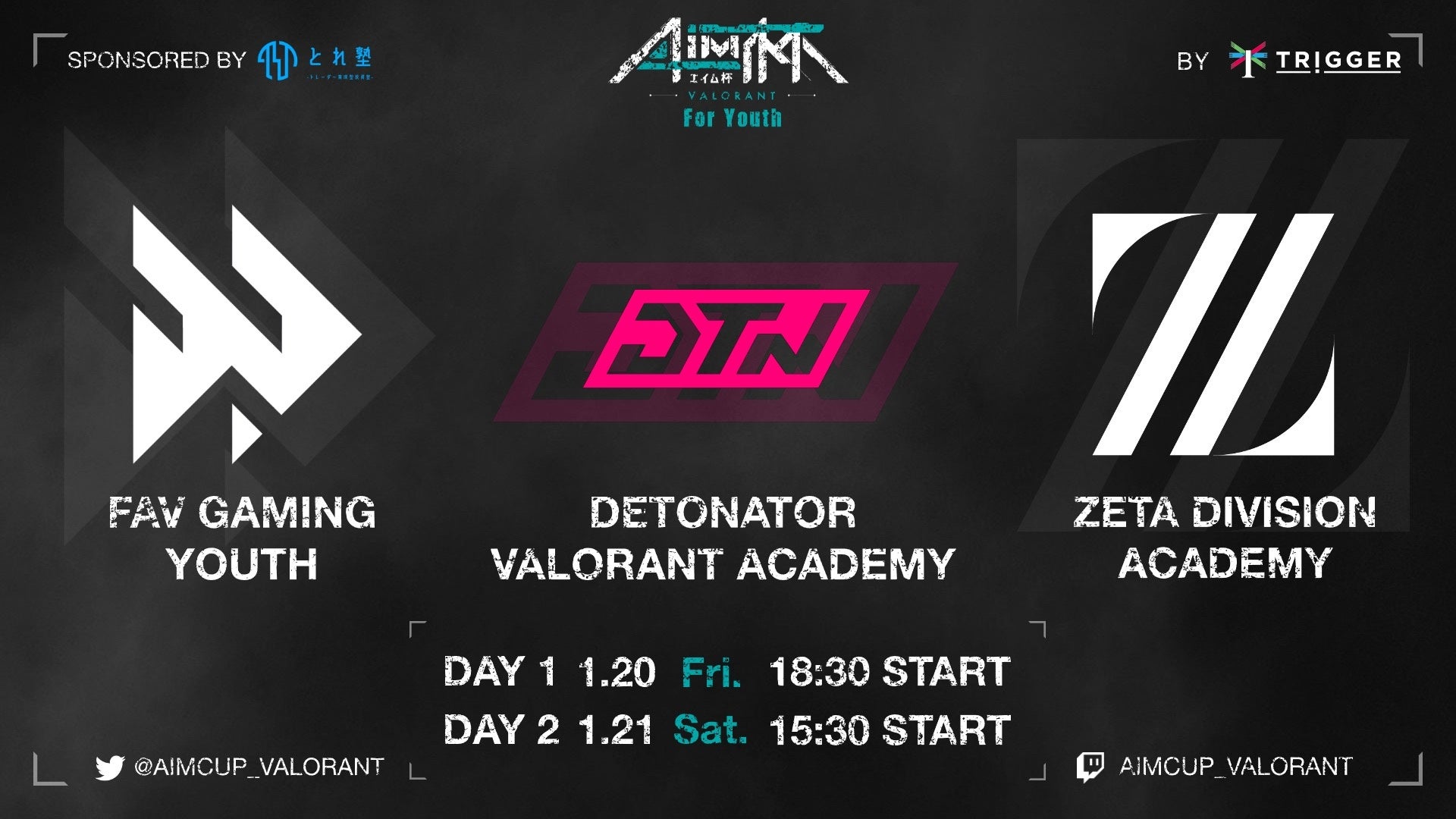 【AIM杯】初のYouth限定大会を開催!ZETA DIVISION ACADEMY, FAV Gaming Youth, DETONATOR VALORANT ACADEMYが参戦