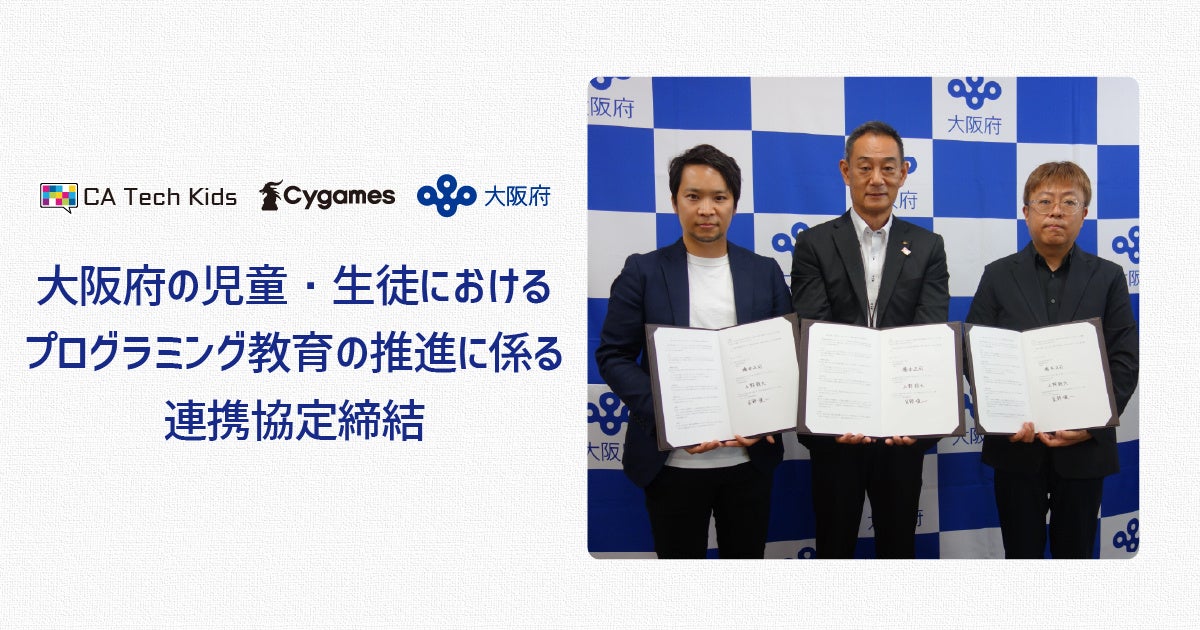 CA Tech Kids、Cygames、大阪府教育庁の3者がプログラミング教育推進の連携協定締結 小学生に向けたワークショップ実施やコンテスト開催支援