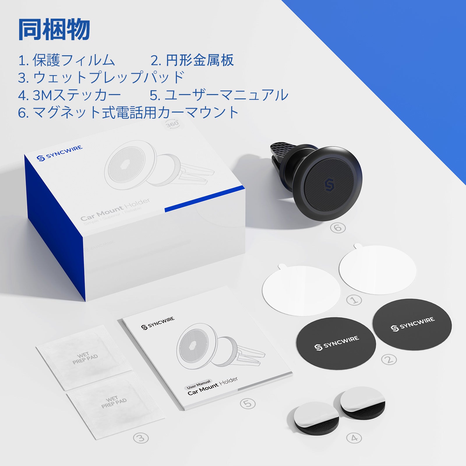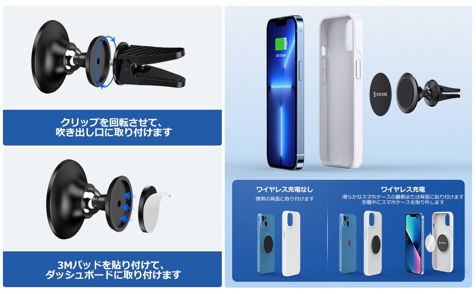 30%オフ!【業界初 2in1 】 Syncwire 車載ホルダー マグネット 超強磁力 360°調整可能 スマホホルダー 高級合金素