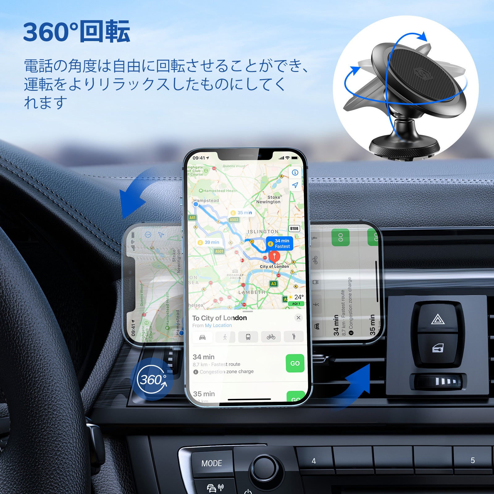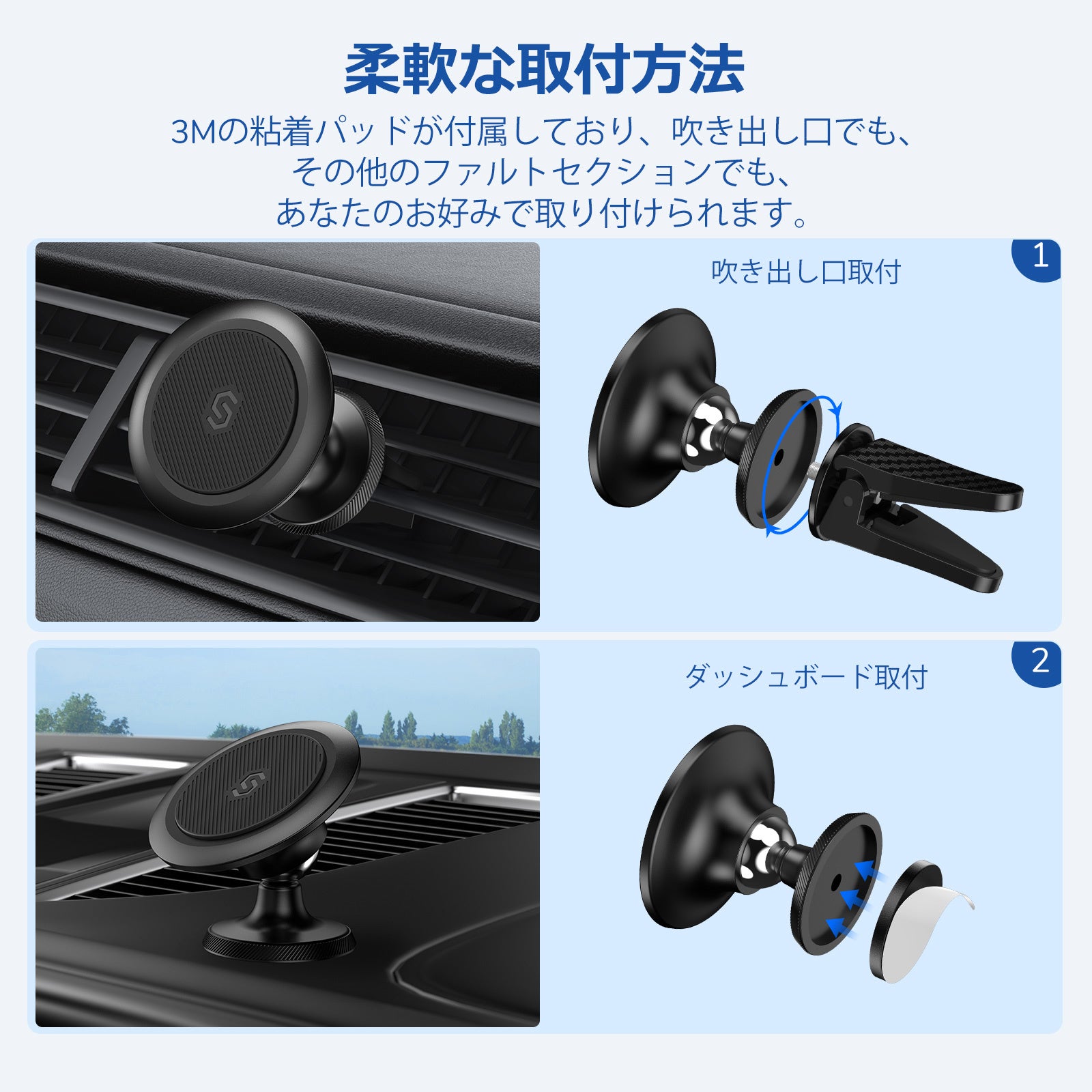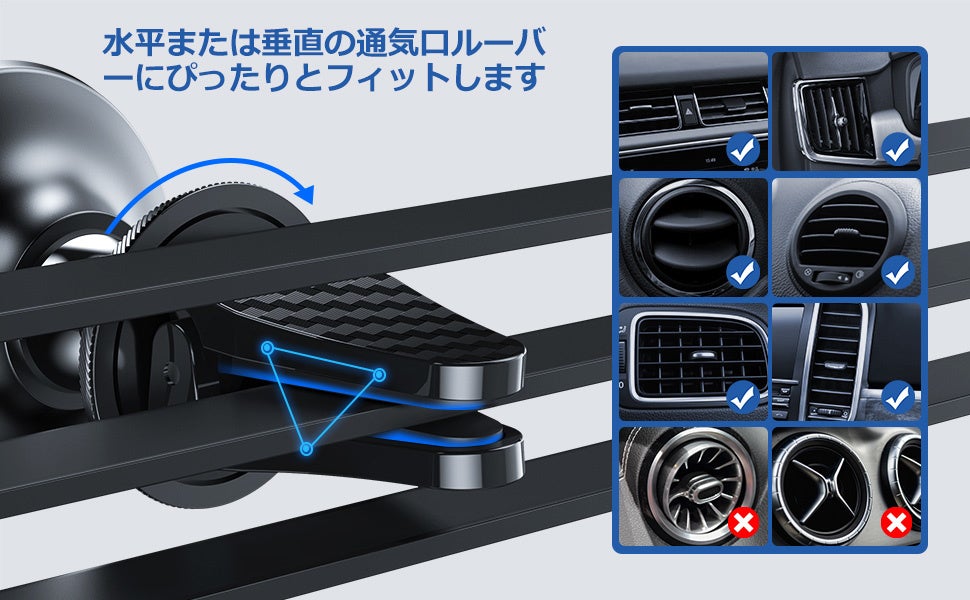 【業界初 2in1 】ダッシュボードとエアコン吹き出し口とも使えます!2015年の創業以来、顧客ファーストを貫き、スマートフォンのアクセサリーからウェアラブルデバイスまで、高品質で優れた製品を開発するために日々取り組んでいます。