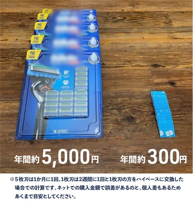 2週間に1度交換したとしても年間約300円とお安く、また互換性がございますので、お好きな切れ味の替刃をお使いいただけます。