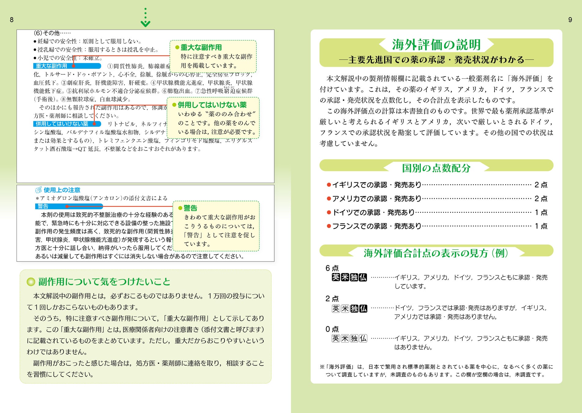 4.主要薬について英米独仏4カ国での承認販売状況を掲載し、薬の実力を評価。