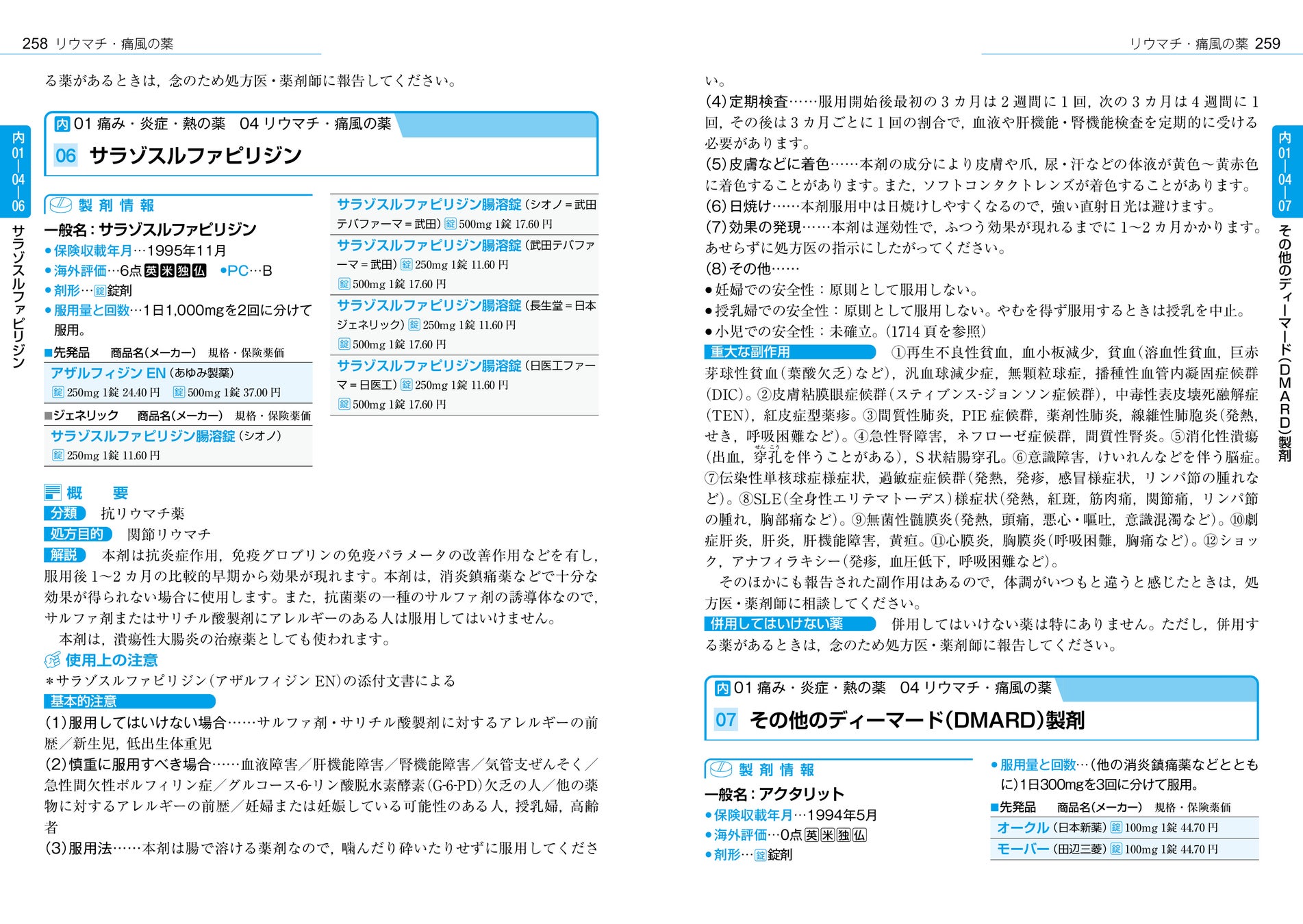 5.注射薬は抗がん薬と自己注射(インスリン製剤、腹膜透析液、リウマチ・パーキンソン病・乾癬の薬など)、COVID-19治療薬(新型コロナウイルスの薬)までを掲載。