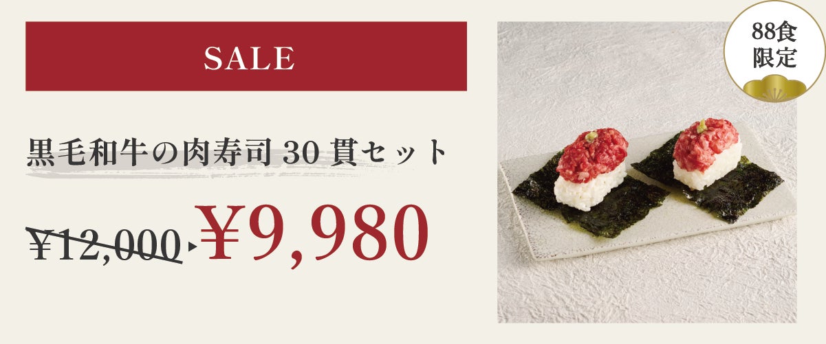 『黒毛和牛の肉寿司30貫セット』9,980円(税込) 通常12,000円相当