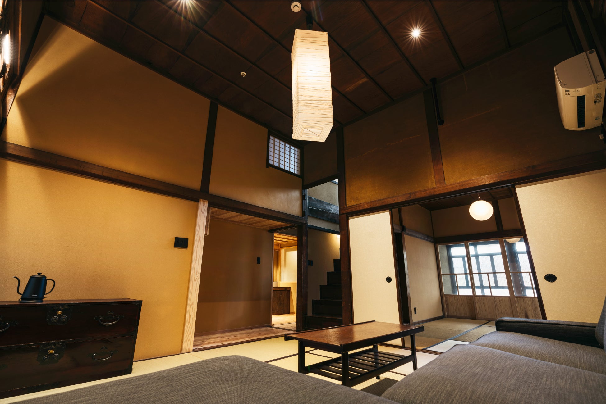 今回改修を行った蔵は物置として使われておりましたが、「うきはの恵みに酔う」をコンセプトに、1階には宿泊客が利用できるセルフバー、2階には居室及び寝室を据えた、1棟貸しの客室として生まれ変わります。