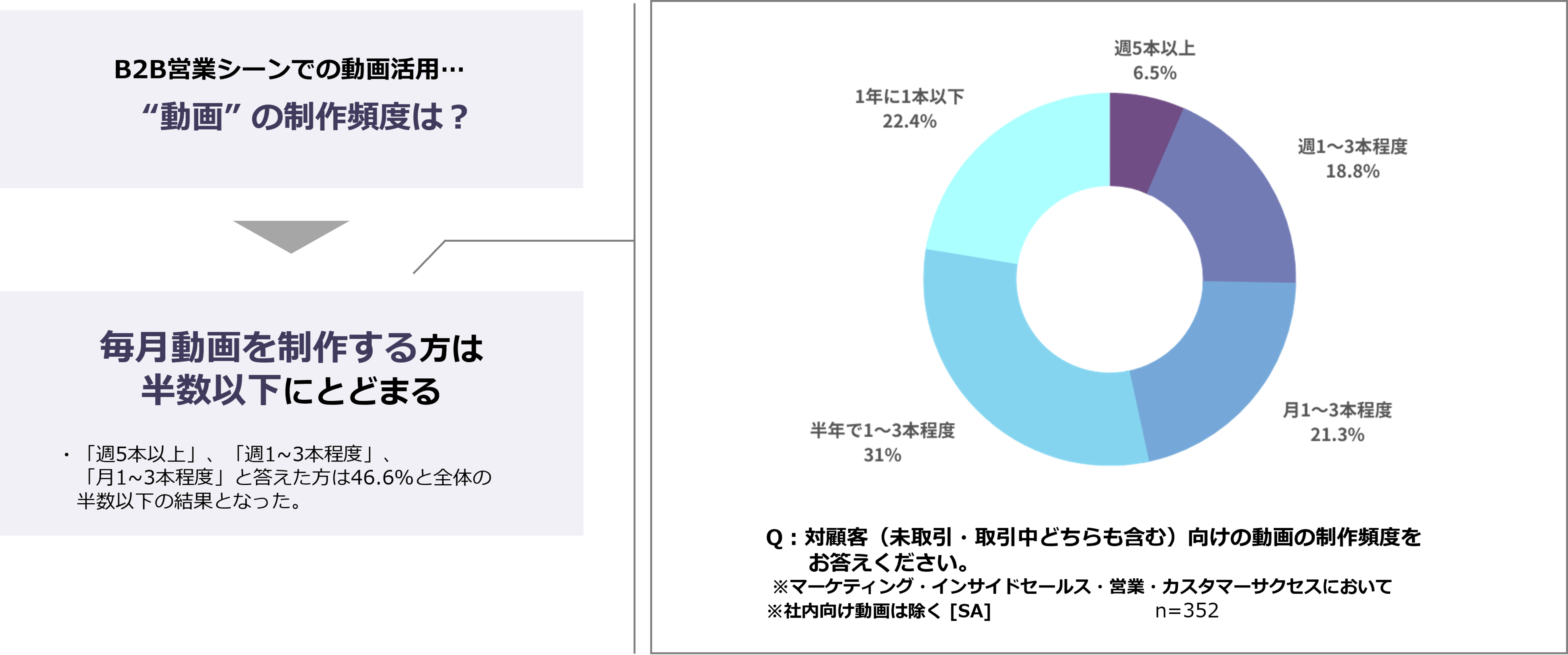 ・ B2B営業シーンにおいて 毎月動画を制作する方は46.6%