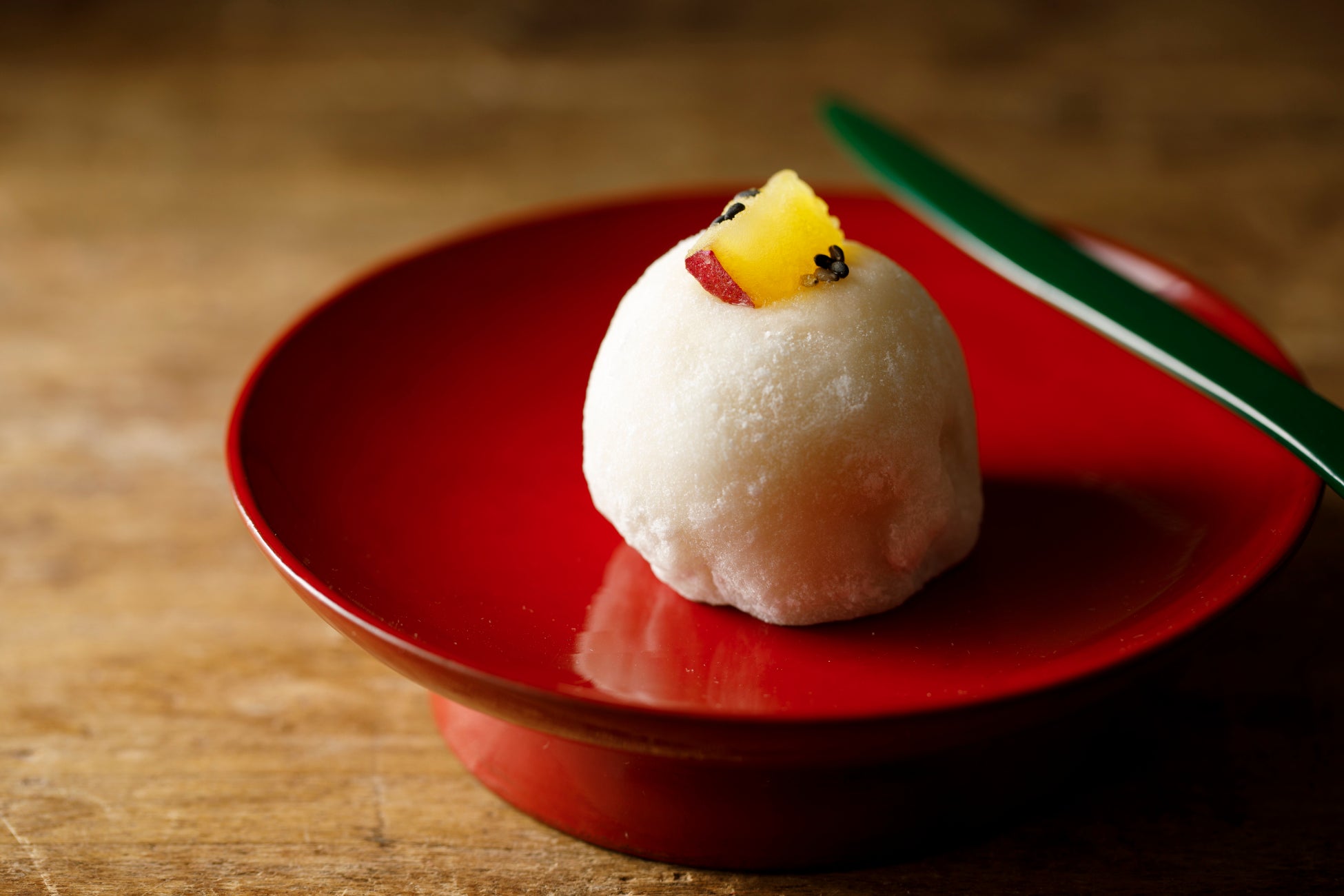 国産有機米と国産有機大豆を天然蔵で長期間熟成させた十二割糀の味噌で、米麹を大豆より多く使い、濃厚で米の甘さが際立つ「米麹味噌」を餡に使用、こっくりとした深みのある餡になりました。能登の山々の紅葉を表現しています。