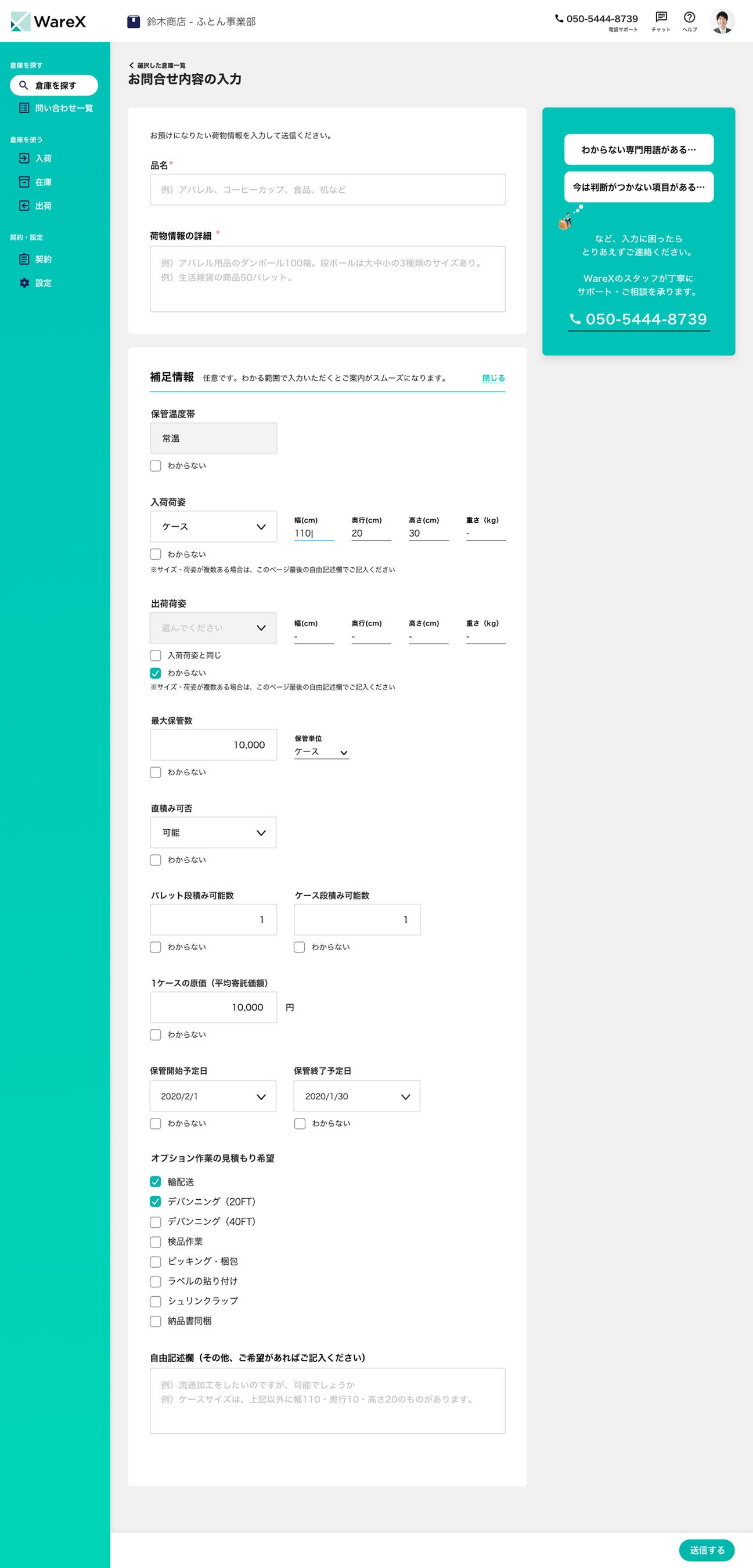 シェアリング倉庫サービスWareXが倉庫への問い合わせ機能(引き合い送信機能)を大幅リニューアル