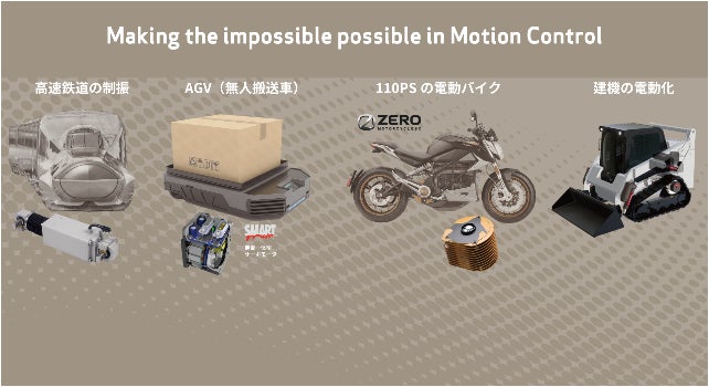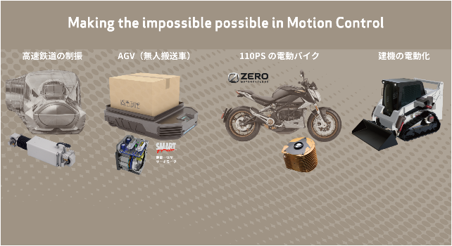 高速鉄道の制振やAGV、電動バイク、建機の電動化など当社が実績のあるアプリケーションをご紹介します。