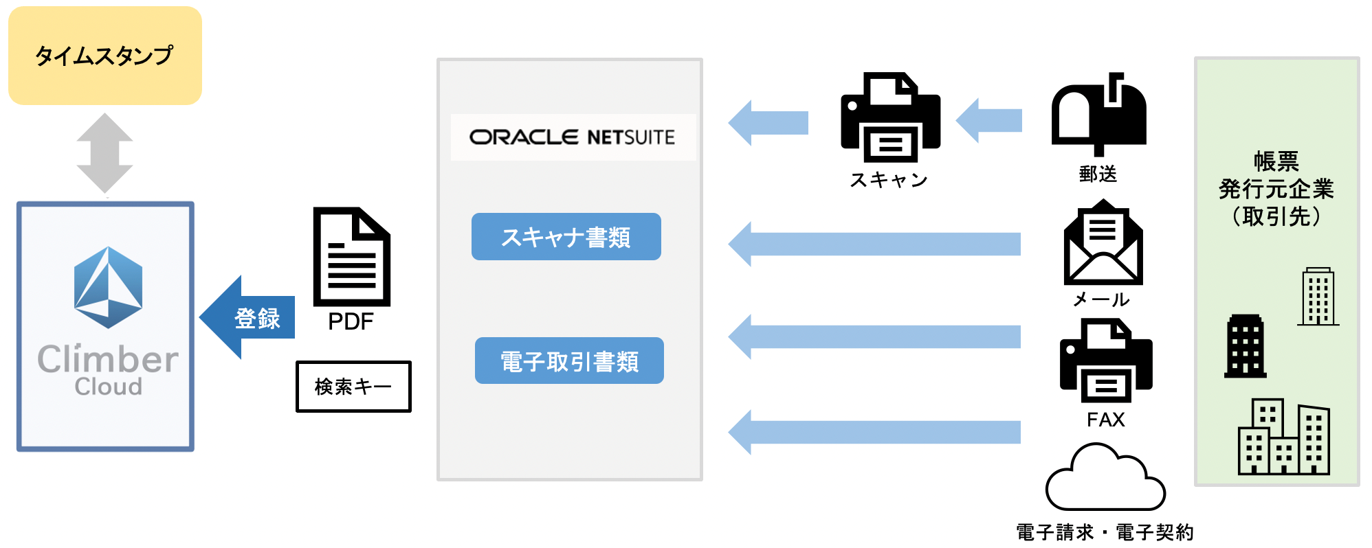 今回の連携により「NetSuite」で作成した請求書や添付した領収書の画像ファイルなども、自動で「ClimberCloud」へ連携・登録することが可能になります。