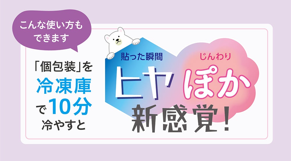 ここで、トピック!現在「ヒヤぽか」というアイディアで、冷凍庫で10分冷やして使用することによって、貼った瞬間冷たく、そしてじんわり温かいという新感覚!温活という新しい使い方を提案。現在ロフトや多数の販売店舗で「母の日フェア」でも好評発売中(RelaxQは通年販売商品です)