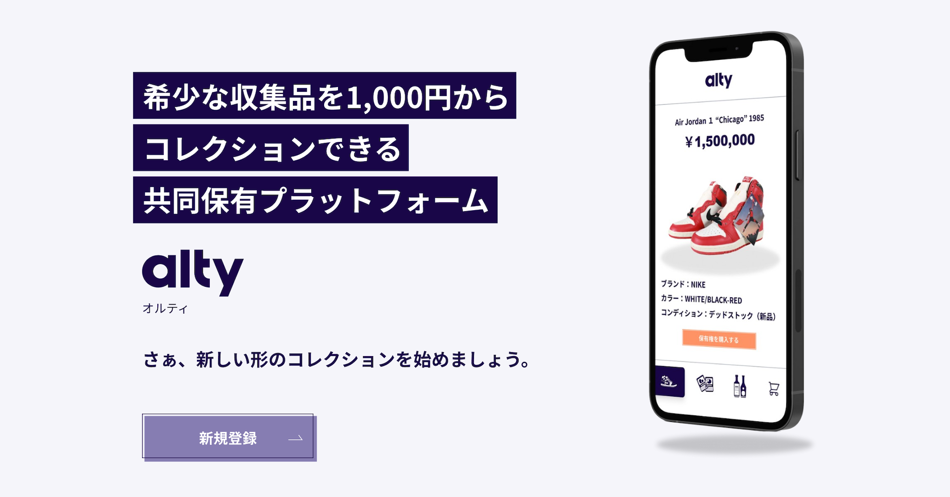altyは、希少なスニーカーやトレーディングカードといった資産価値の高い収集品の保有権を共同保有する新しいコレクションプラットフォームです。