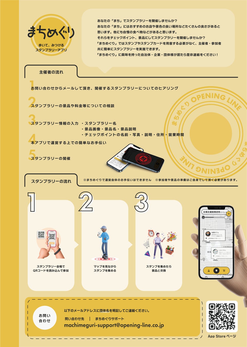 ブロックチェーン技術の社会実装に定評のある株式会社Opening Lineが提供する、操作方法がかんたんなスマホアプリ「まちめぐり」を活用し、高松や父母ヶ浜のアート作品が展示される様々なスポットめぐり、街歩きをより一層、楽しむしかけを企画します。ユーザー参加は無料で、貯めたスタンプに応じた特典が受けられます。