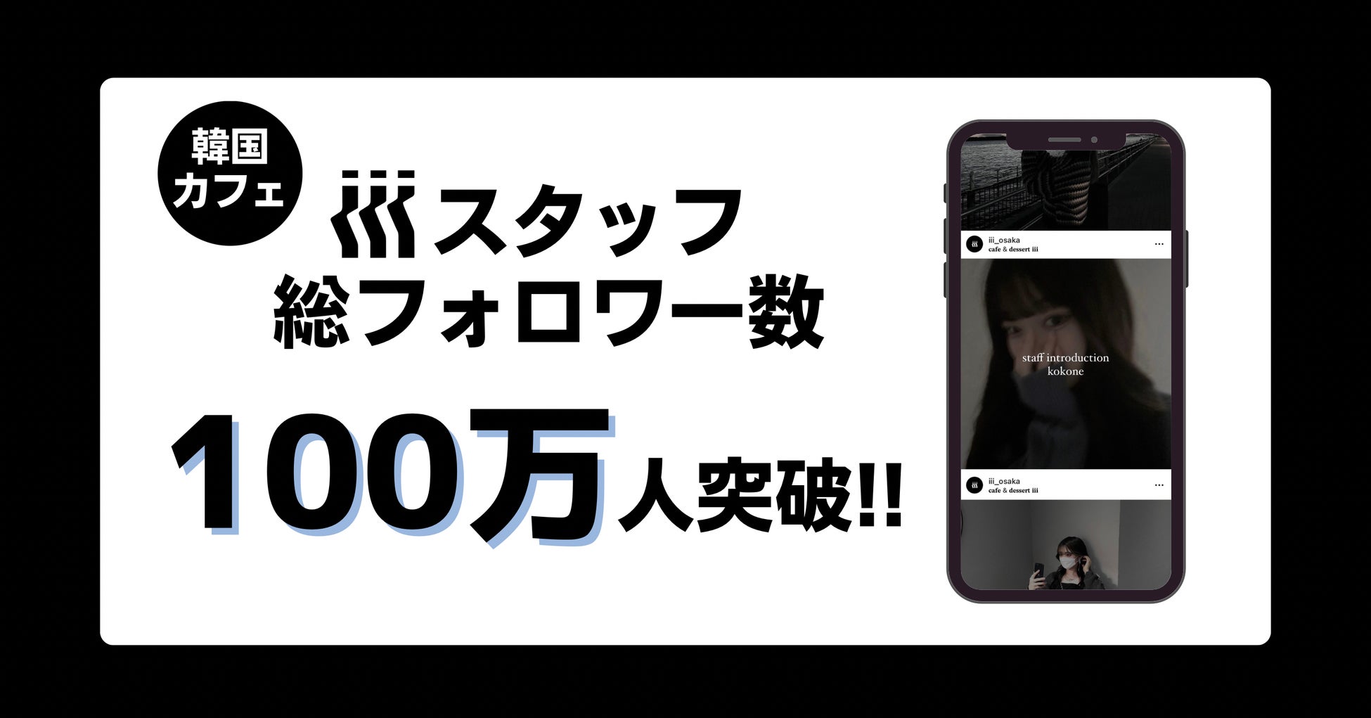 株式会社BrandingCreation(本社:大阪府大阪市中央区、代表:前田啓太)が、運営・プロデュースする韓国カフェ「cafe&dessert iii(アイ)」(以下iiiと呼ぶ)で働くスタッフの総フォロワーが100万人を突破したことをお知らせいたします。