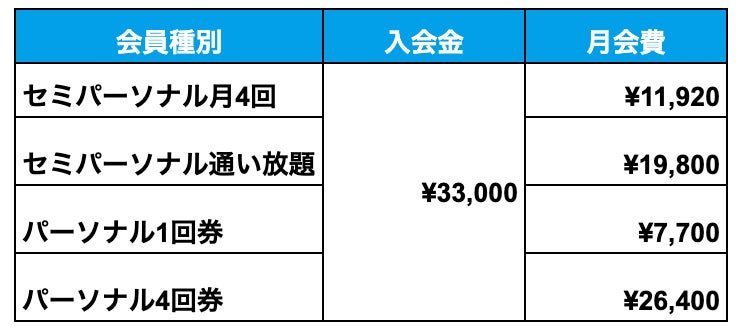 ※1回のトレーニング時間はセミパーソナルトレーニング45分/パーソナルトレーニング50分です。