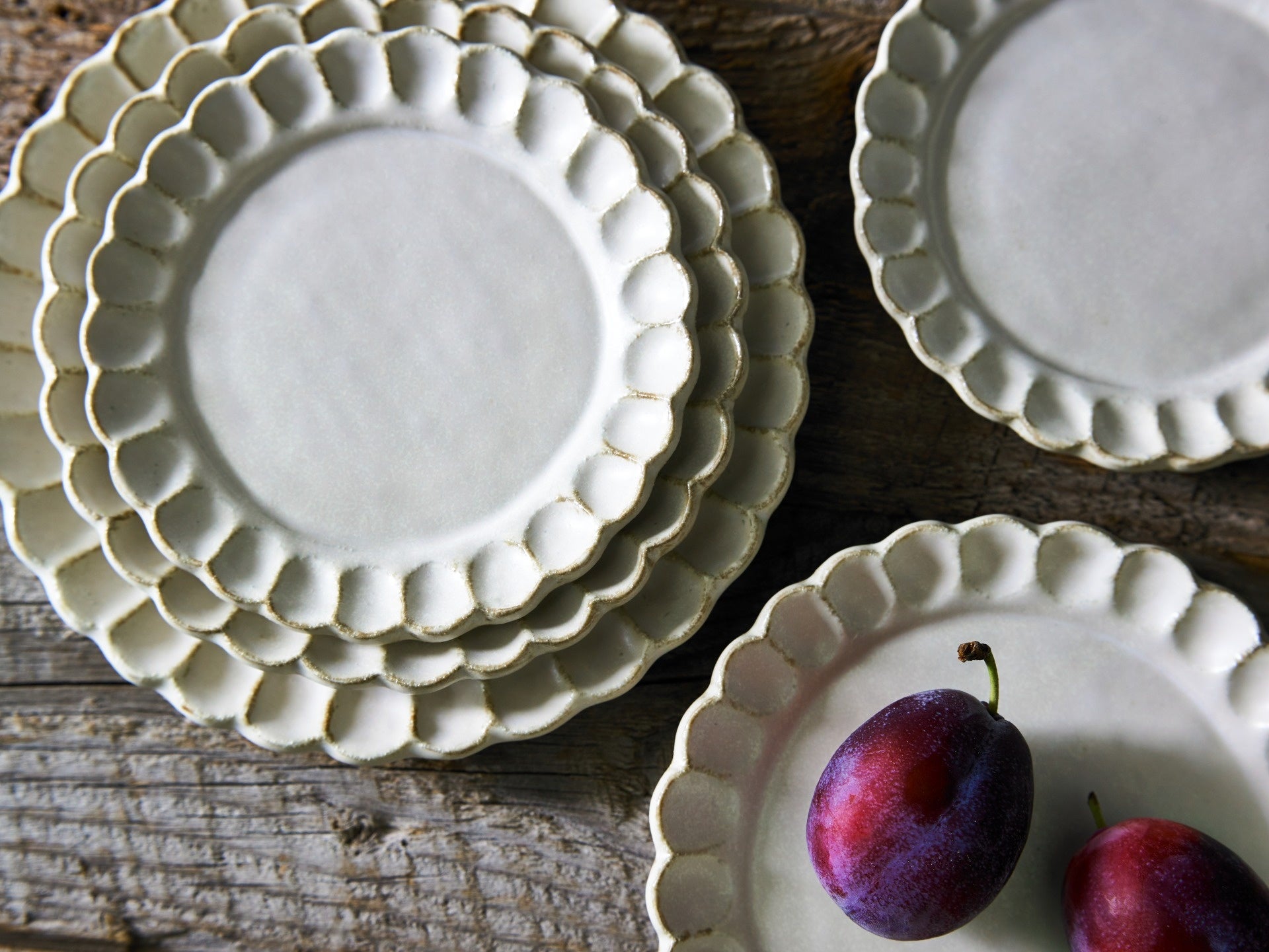 大ぶりな花弁が特徴のリンカシリーズですが、今回のリンカ ココでは花弁を小さくし、お皿を平らにしていくことで、リンカとは少し違ったキャラクターのお皿になりました。アンティーク感が増して、ケーキやお菓子をのせたりすると素敵なティータイムを演出してくれます。