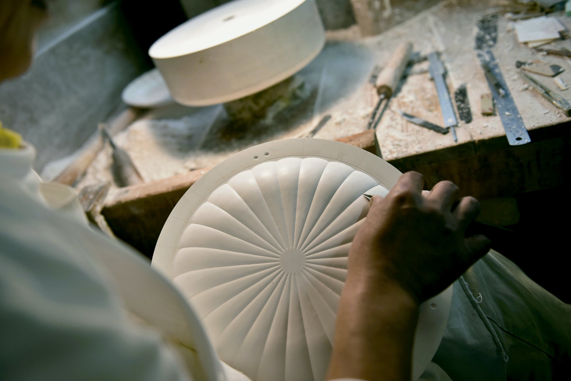 リンカシリーズは、長くお付き合いしている型職人と共に作られました。土を使って原型を作り、それをもとに石膏型を作ります。この型づくりにも熟練の技とデザインセンスが必要です。初代リンカを作った型職人は世代交代し、今回のリンカココは息子である若き跡継ぎと共に作りました。美濃焼の産地のうつわとして、故きを温ね新しきを知る象徴でもあります。