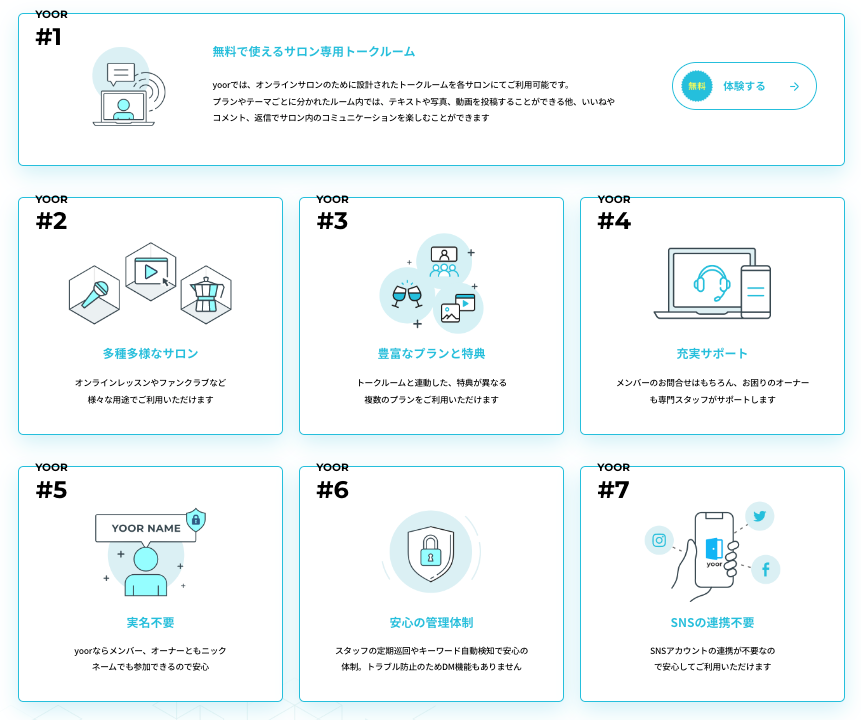yoorは誰でも気軽に利用できるオンラインサロンプラットフォームとして、同じ価値観を持つ仲間やファンと安心してつながり、みんなが輝ける場所作りを目指してまいります。