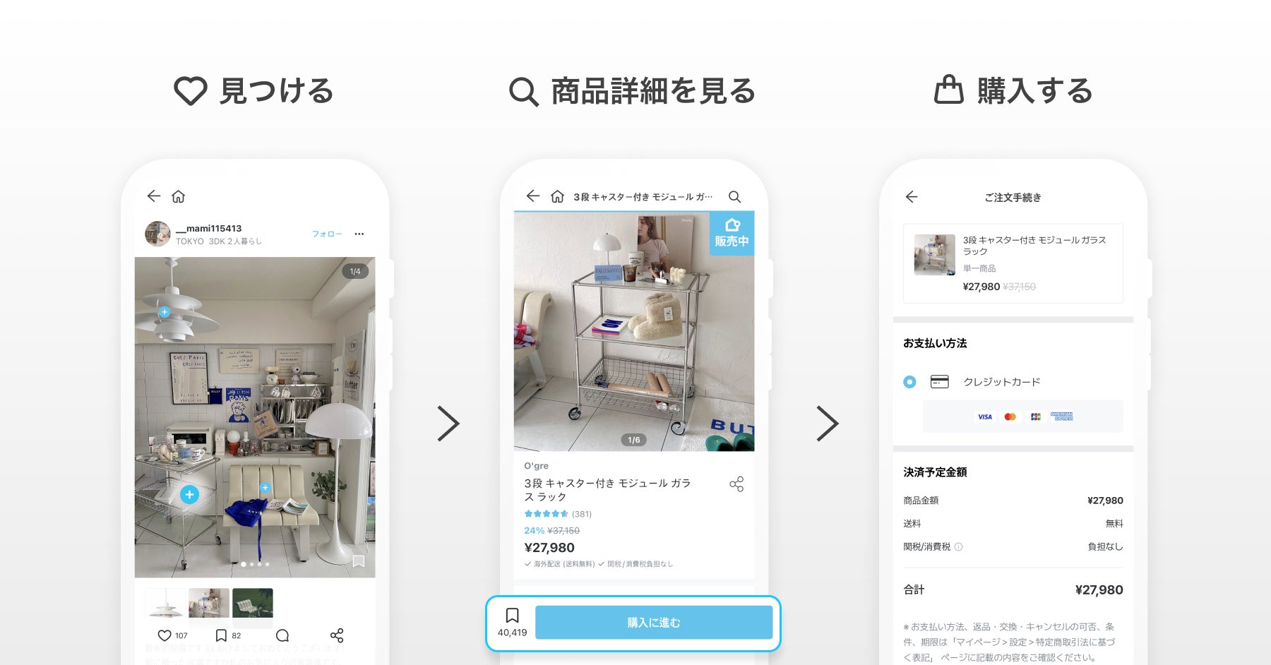 Ohouseは、その商品を利用しているユーザーが投稿した膨大な実例写真から「欲しい!」と思ったときにタグをタップするだけですぐに購入することができます。閲覧可能な実例写真は日本・韓国の投稿含めて10万件以上。お部屋へのこだわりがあるユーザーの皆さまによる、魅力的なインテリア写真を見ながら購入できるため納得感の高く、楽しい購買体験をお届けできます。