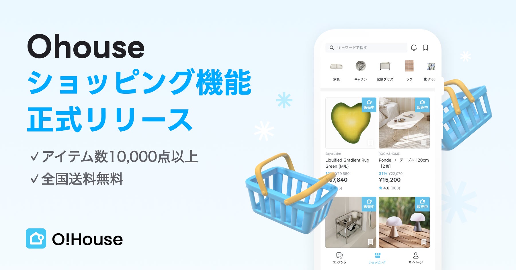 キャンペーン名:Ohouseショッピング機能リリース記念 OPENING SALE