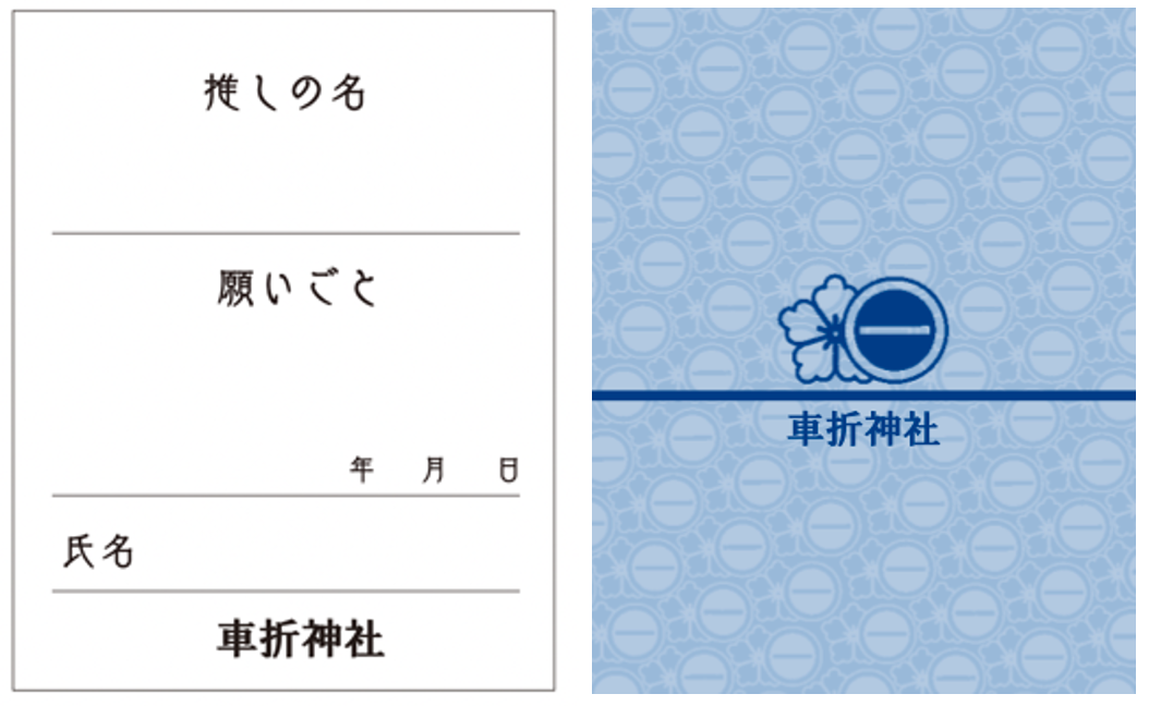 お守りは「◯◯祈願」など最初から願いごとが書かれたものがほとんどですが、推し活をするうえでは「推し」も「願いごと」も人それぞれ違います。そこで『推しmamori』では叶えたい「願いごと」を自由に書き込める仕様になっています。「願いごとカード」は5種類のデザインから選ぶことができ、記入後はお守りの裏側にあるポケットに入れてお守りと一緒にお持ちいただけます。