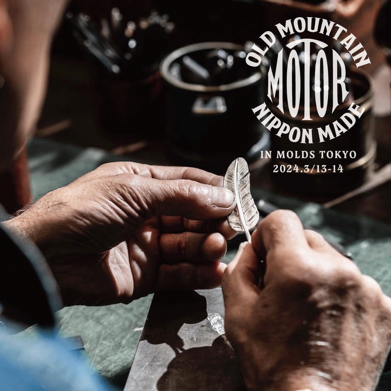 LEATHER ARTS & CRAFTS MOTO とのコラボ企画第 2 弾。今回はジュエリーをピックアップしたスペシャル企画として、MOLDS TOKYO GALLERYでしか手に入らないOLD MOUNTAIN限定モデルのチャームトップの他、数量限定で本池秀夫氏によるハンドクラフトのイーグルやフェザーなど今回だけ特別に販売。ご購入の際はハンドメイドでチャームやネックレスに目の前でカスタムをして お渡しさせていただきます。普段購入すること自体が難しい、今回だけのスペシャルな企画。