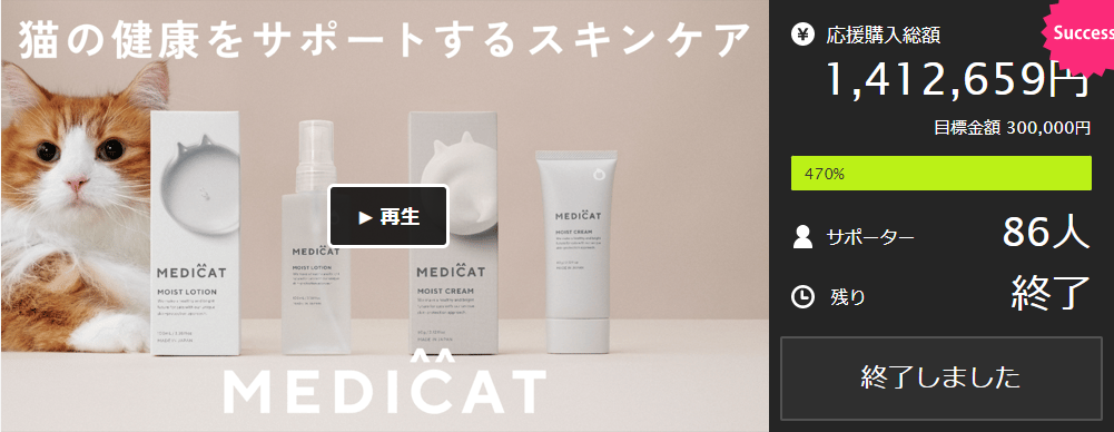 「うちの猫は皮膚が弱いのでとても楽しみです」「こんな製品をもっと作ってほしいです」といった熱い応援コメントも多くの愛猫家の方々から寄せられました。