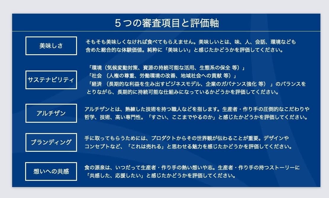 サミット内で行われた「フード & ドリンク アワード」には、日本全国から厳選された15社が出場。審査員は各ブースを見学・試食し、「美味しさ」「サステナビリティ」「アルチザン」「ブランディング」「想いへの共感」など多角的な視点で評価を行いました。2025年度のアワードは、70名以上の審査員による厳正な審査を経て、入賞企業や部門賞が決定されました。