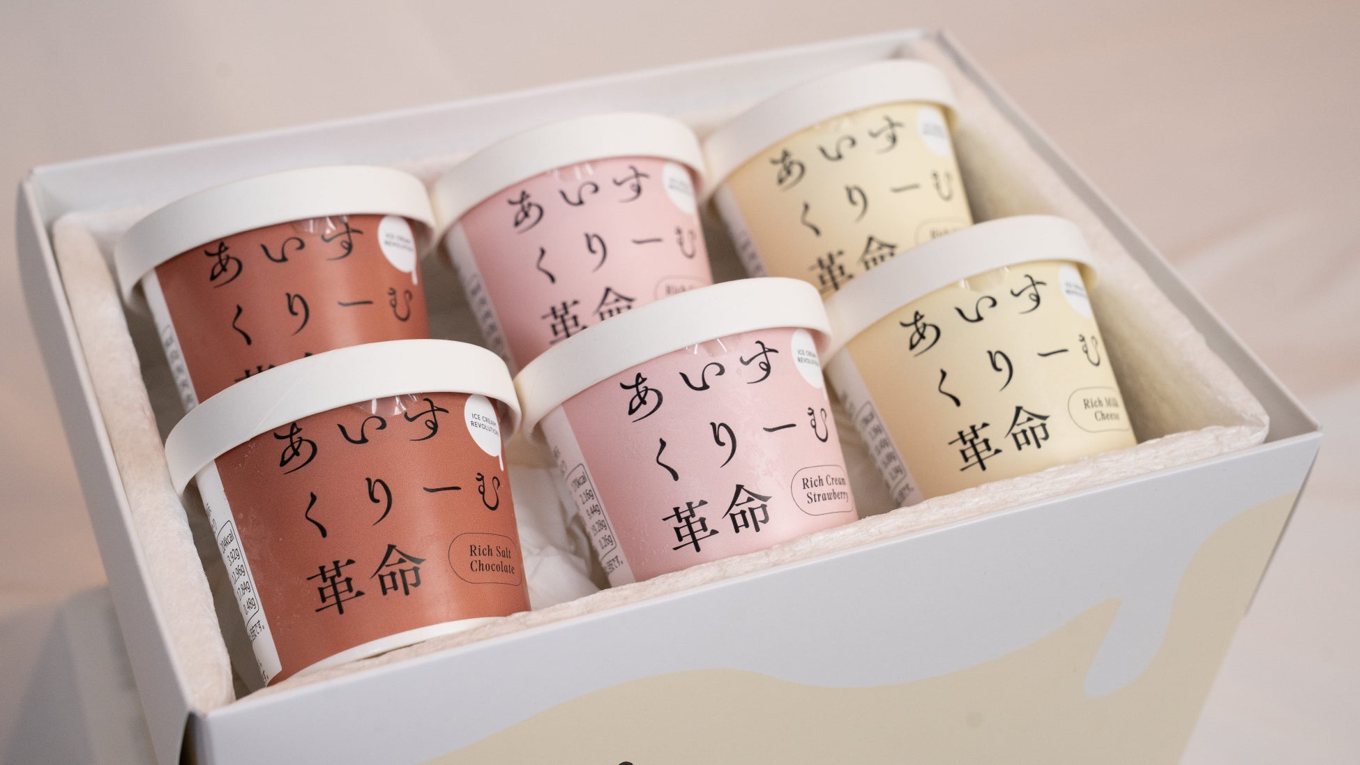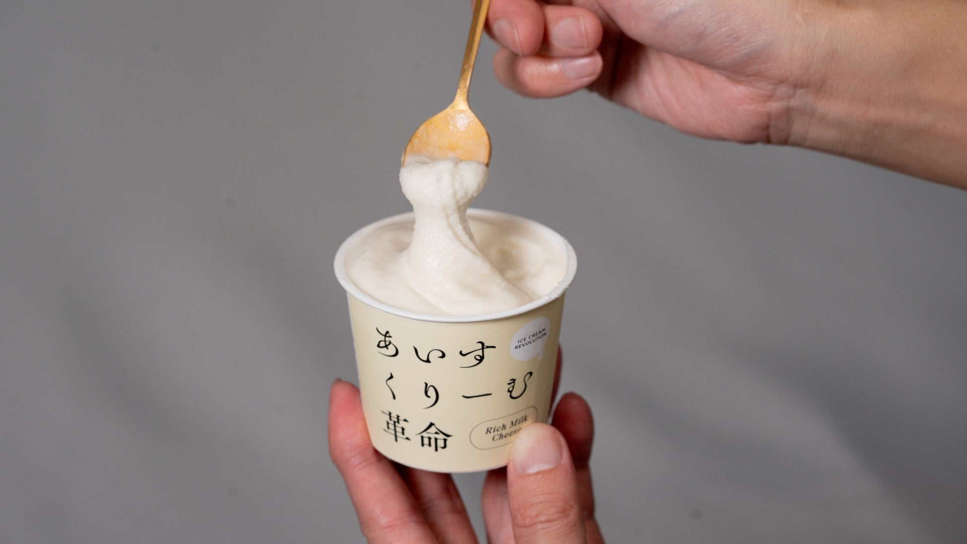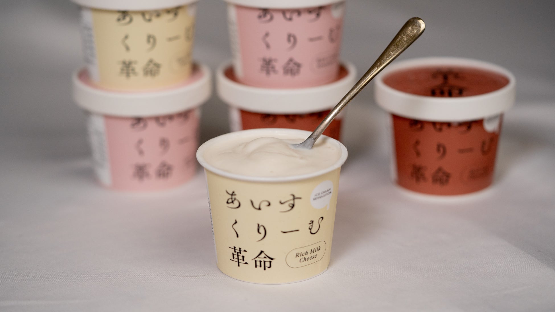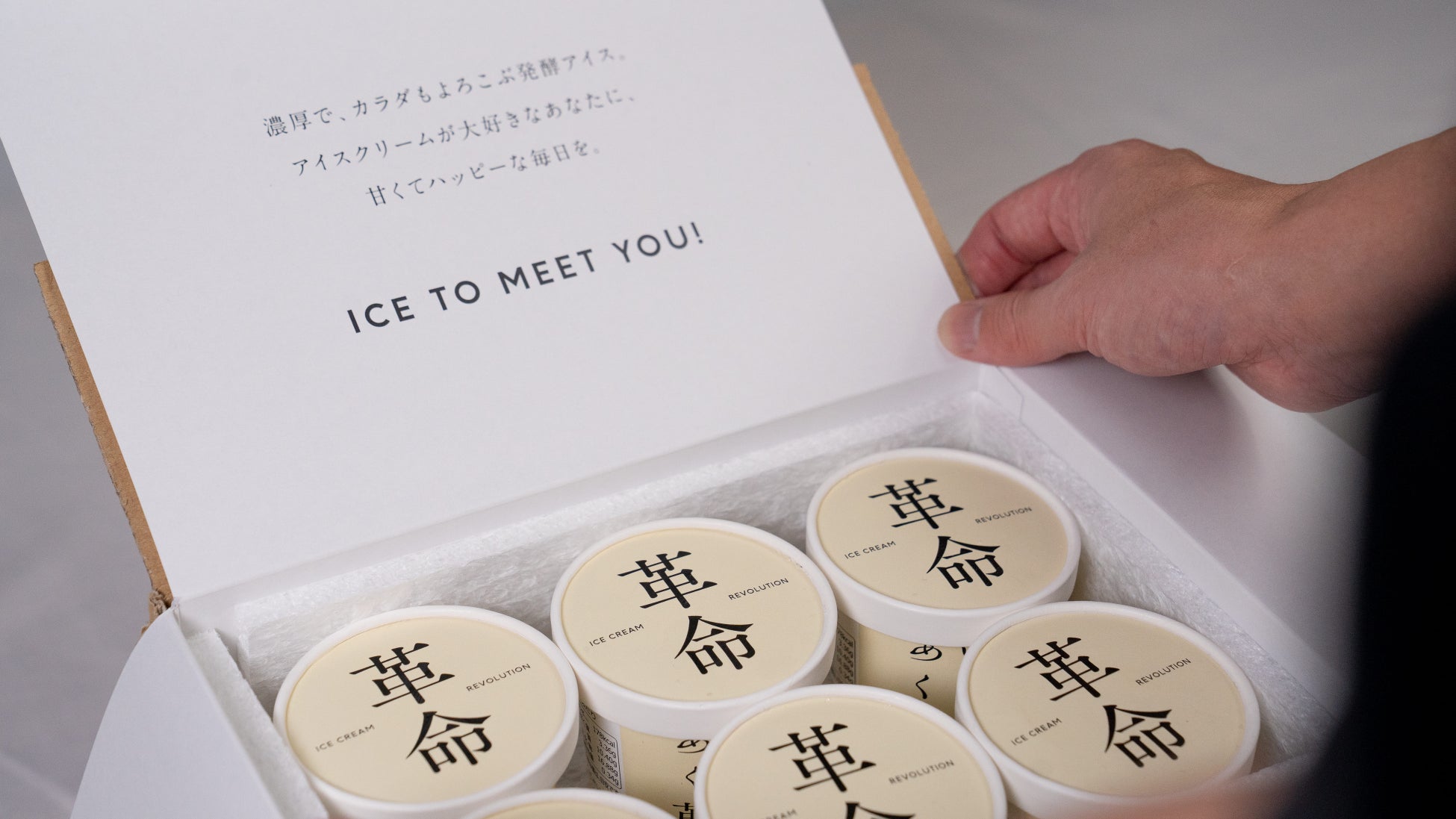 『あいすくりーむ革命』は、株式会社麹王子が開発した発酵クリーム(特許出願予定)を使用することで、砂糖を96%まで削減し卵不使用、無添加で現存の高級アイスクリームと遜色ないテイストを再現