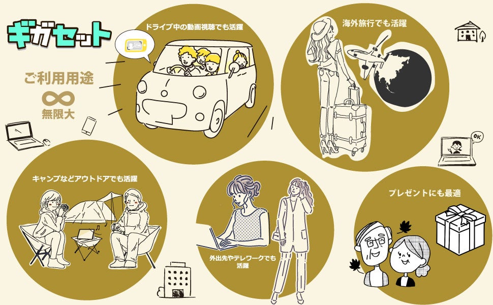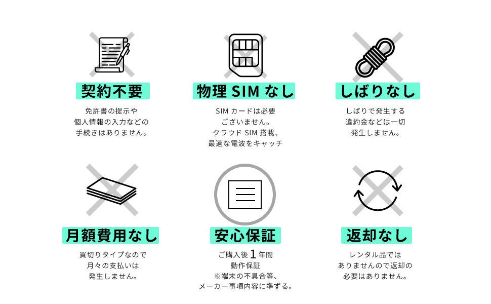 ●月額費用なし:端末本体代と年間ギガを最初にご購入いただくので、毎月のランニングコストはかかりません。