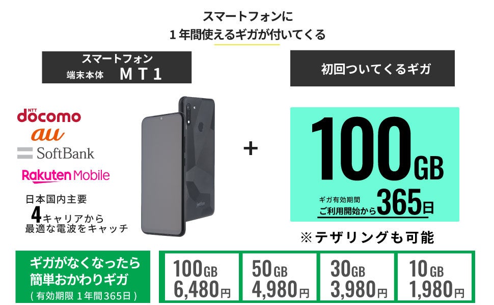 【契約不要・月額費用無し】1年間100GB付きスマホ『 ギガセット 』の新商品として販売開始!