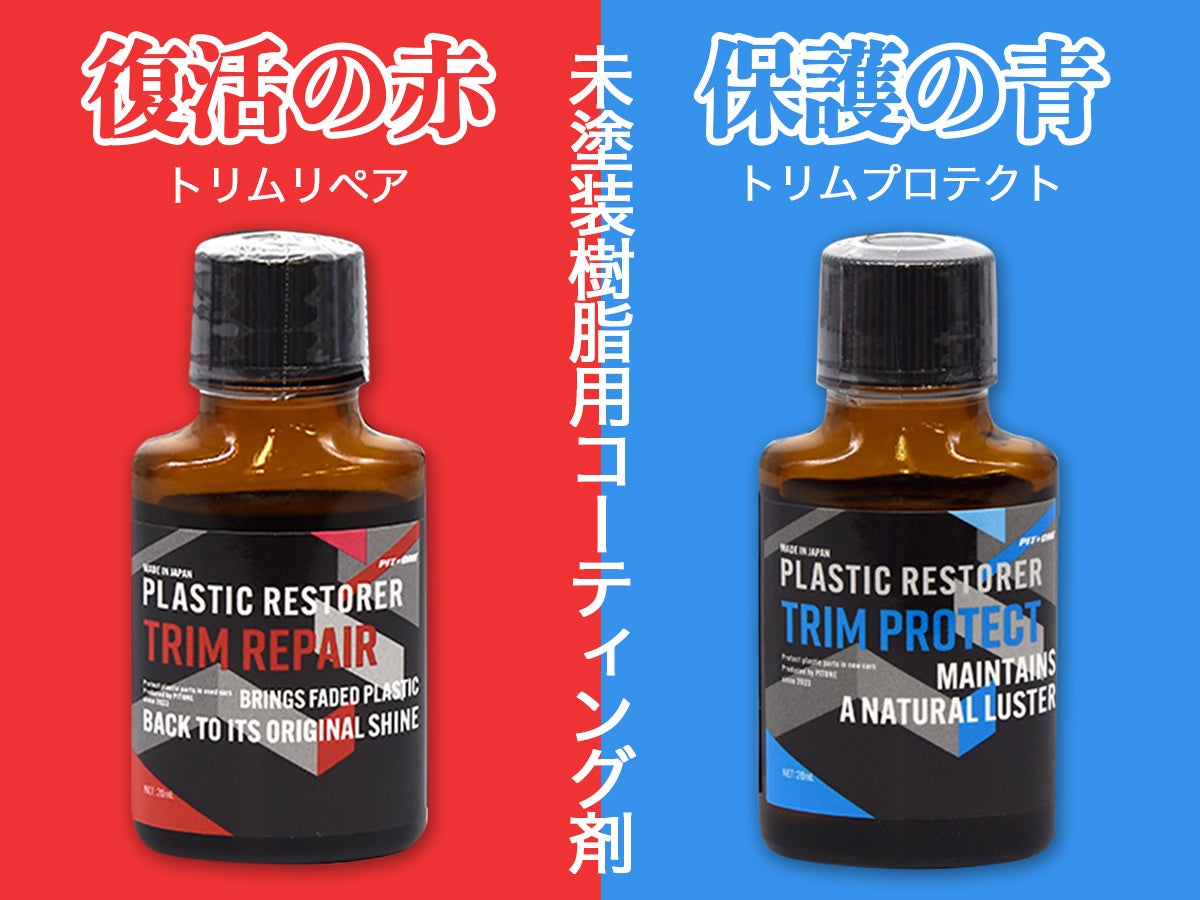 ピットワンではトップラン(大阪府大阪市中央区、代表 塚田勝彦)の協力を得て、劣化した樹脂パーツの黒艶を復活させる「トリムリペア」に加え、劣化を防ぐ「トリムプロテクト」を開発、5月26日に発売いたしました。