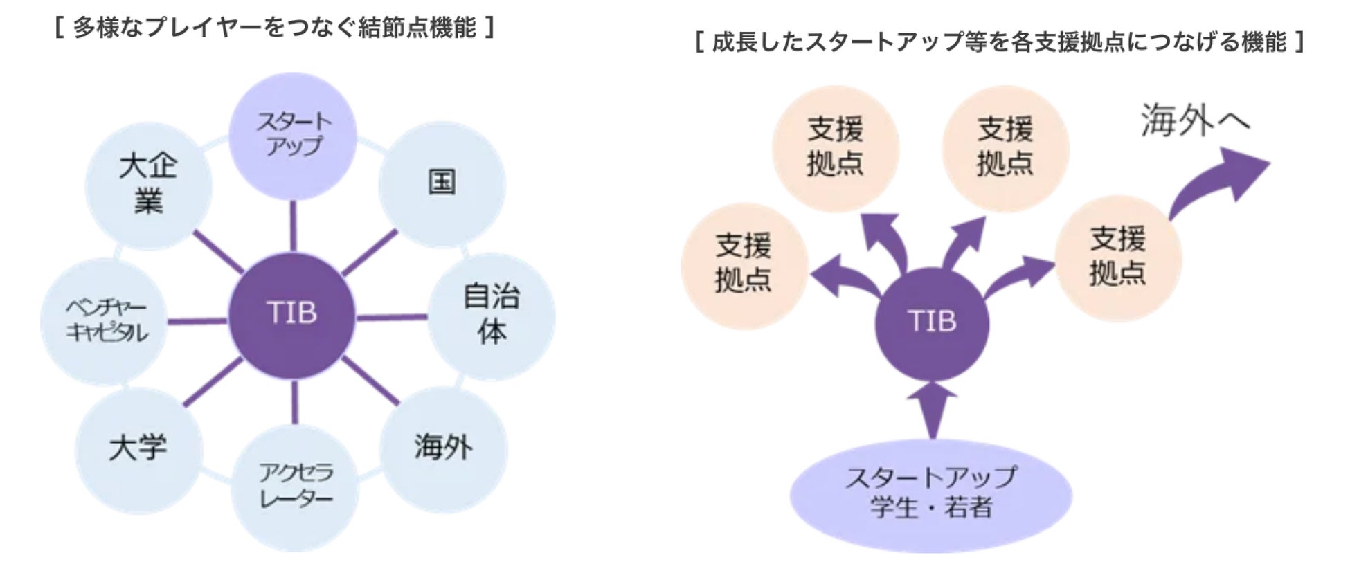 TiBとは「世界中のイノベーションの結節点へ」というビジョンのもと、東京からイノベーションを巻き起こすことを目指し、国内外からスタートアップやその支援者が集い、交流する一大拠点として設立されました。