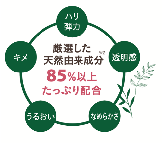 POINT3 : 厳選した天然由来成分※285%以上を「たっぷり配合」。植物の力で輝くハリ・ツヤ肌へ !
