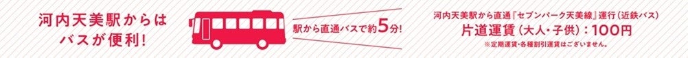 近鉄バスが河内天美駅前~セブンパーク天美間の一般乗合バスを運行中(運賃:大人・子供 100円)