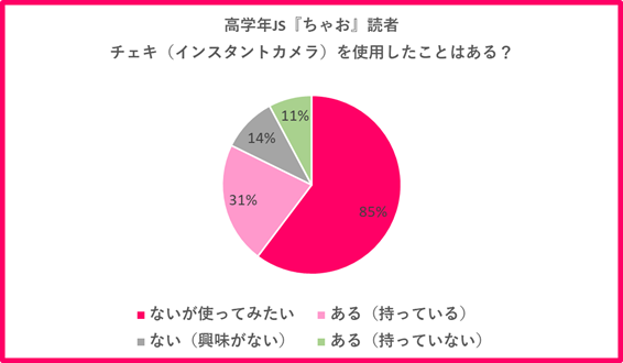 「チェキ(インスタントカメラ)を使った事がある?」という質問に対しては、「ないが使ってみたい」という回答が学年問わずトップに。低学年で1割、高学年で3割程度の子たちが実際に持っていると回答しています。色々なイベントや思い出が今年もたくさん増えるはず。2023年、彼女たちはどんな視点で、どんな世界を撮影するのでしょうか。